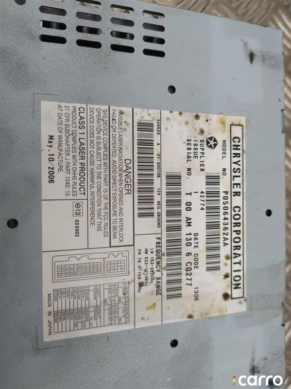 Магнитола Dodge Caliber I 2006-2009 2.0 л. бензин, P05064362AA | 84289