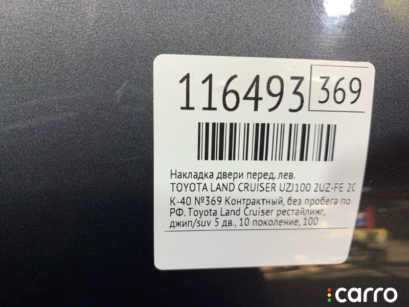 Накладка двери TOYOTA LAND CRUISER 1999-2007 2UZFE | 116493