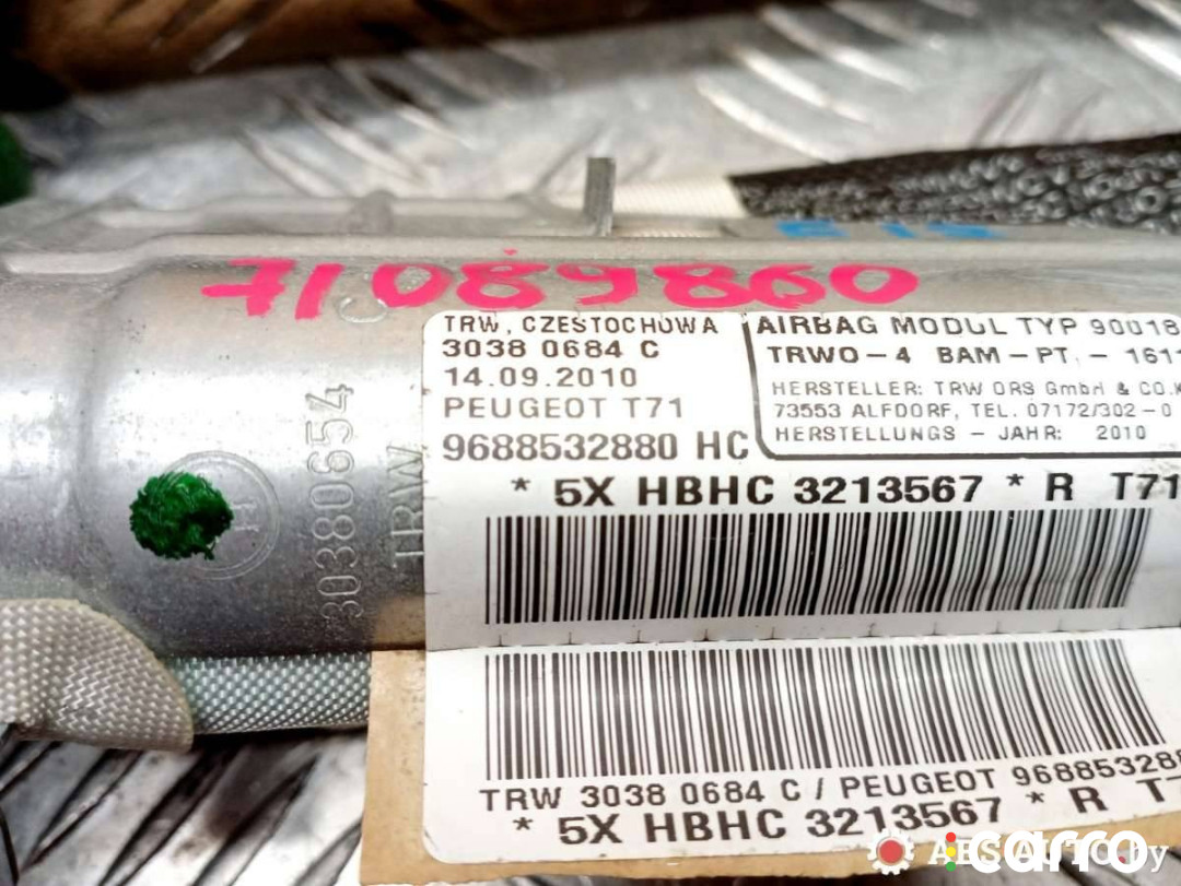 Подушка безопасности боковая (шторка) правая Peugeot 308 1 поколение 2007-2011 1.6 л. 9HYDV6TED4, 9688532880 | 71089860