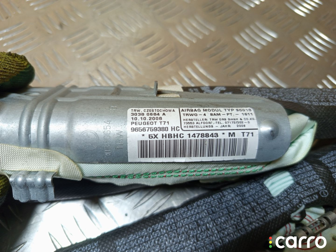 Подушка безопасности боковая (шторка) правая Peugeot 308 1 поколение 2007-2011 1.6 л. EP6, 9656759380 | 75138253
