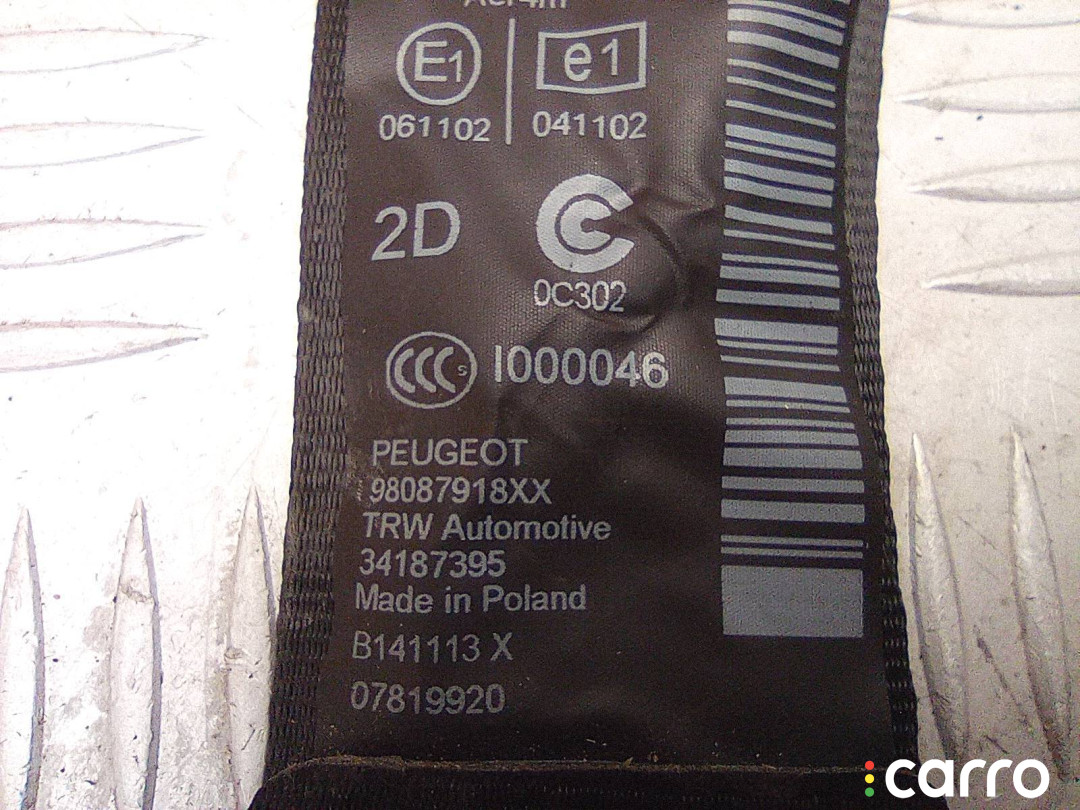 Ремень безопасности задний правый Peugeot 308 2 поколение 2013-2017 1.6 л., E1061102 | A28636