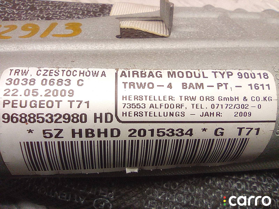 Подушка безопасности боковая (шторка) левая Peugeot 308 1 поколение 2007-2011 2.0 л. RHRDW10BTED4, 9688532980 | A32913