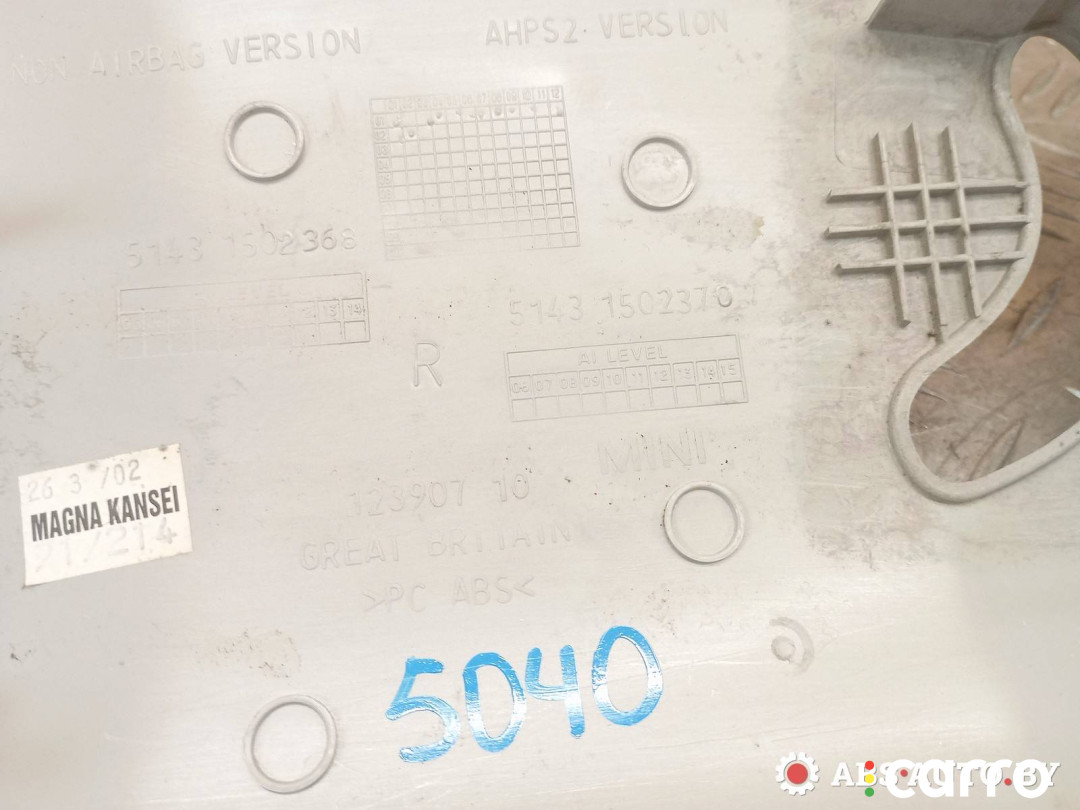 Обшивка стойки передней правой Mini Cooper 1 поколение 2000-2004 1.6 л. W10B16A, 51431502370 | A5040
