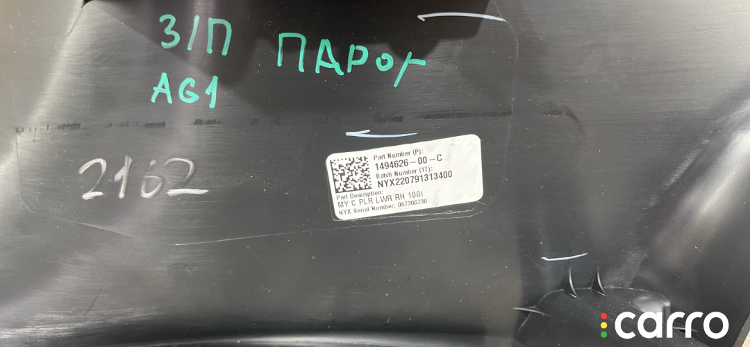 Накладка внутренняя на порог задняя правая Tesla Model Y 1 поколение 2020-2026, 1494626-00-C | 2162
