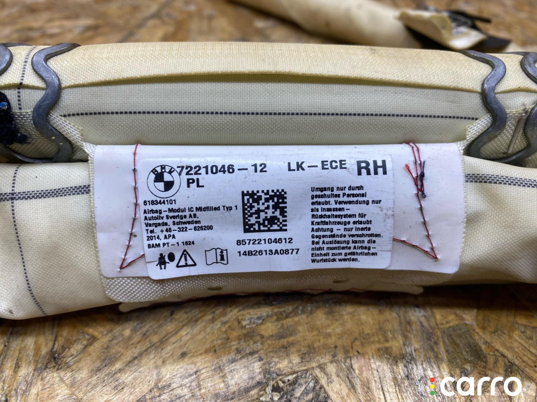 Подушка безопасности боковая (шторка) левая BMW 3 F30/F31 2011-2016 2.0 л., 7221046 | 2884712