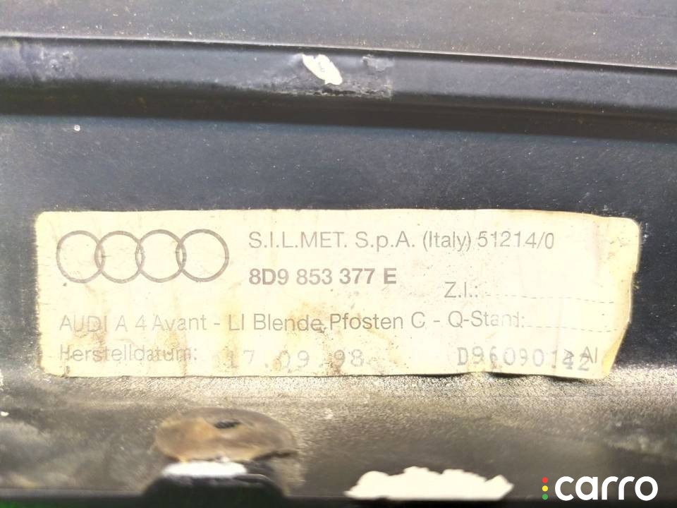 Обшивка стойки передней Audi A4 B5 1994-1999, 8D9853377E | 121791