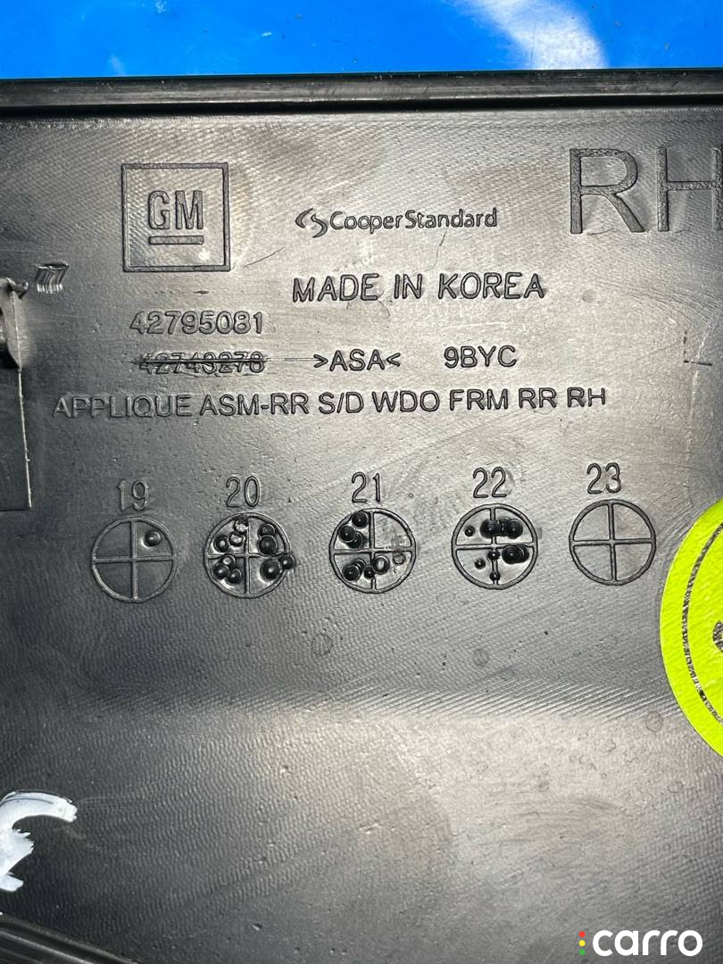 Молдинг двери задней правой Chevrolet TrailBlazer 2016-2022 1.3 л., 42795081 | 48175352