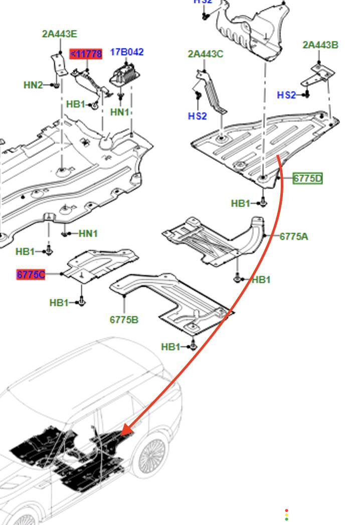 Защита днища Land Rover Range Rover Sport 3 2022-2026 3.0 л. дизель, LR151501 | 482002374876219