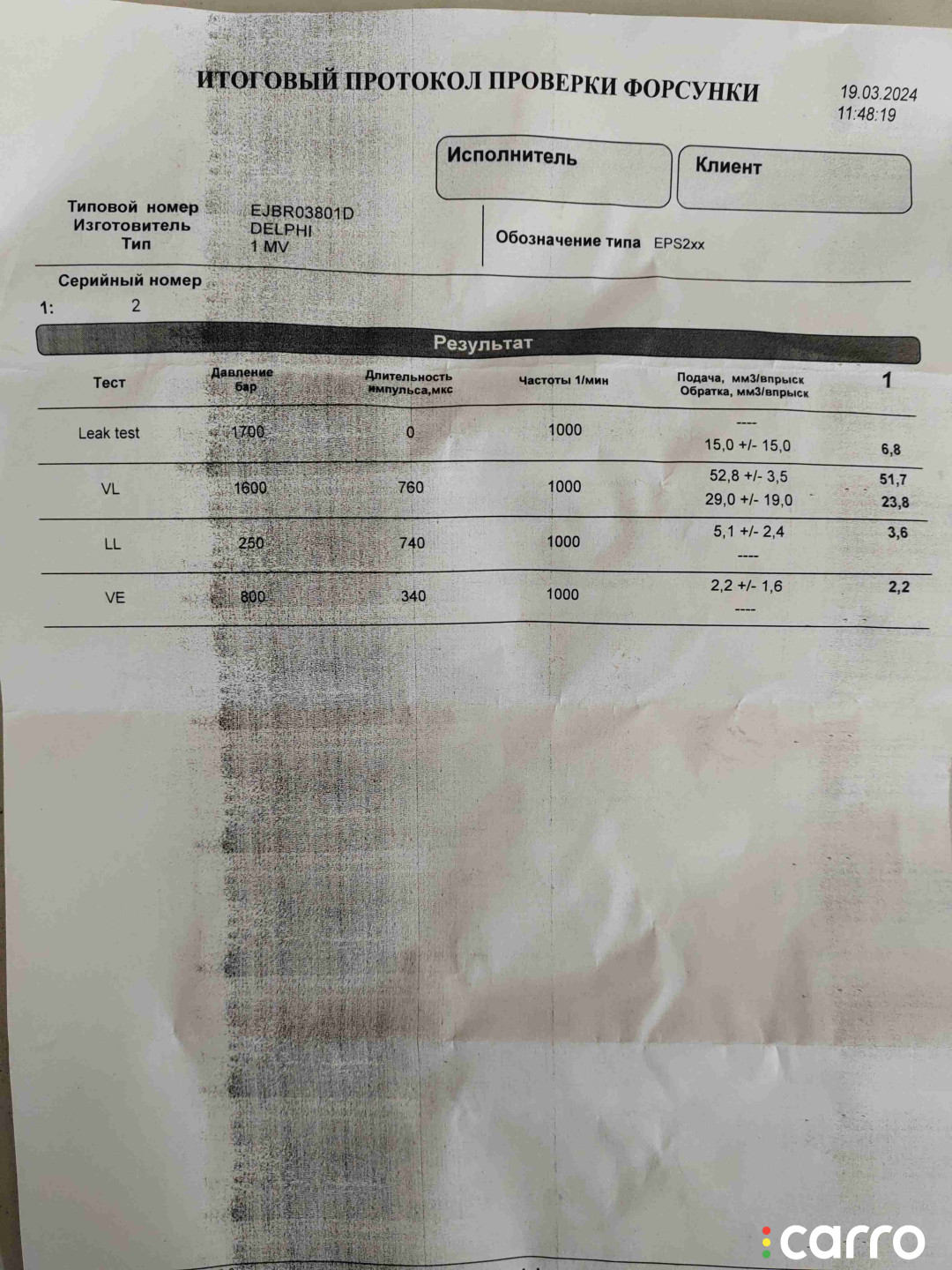 Форсунка топливная Peugeot 407 2004-2008 2.0 л. дизель, EJBR03801D | P40702